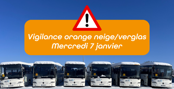 Le département étant toujours placé en vigilance orange neige et verglas, sous l'ordre de la préfecture, les bus de notre réseau Buss s'adaptent concernant la journée du mercredi 7 janvier :
