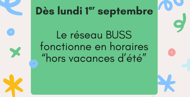 Dès lundi 1er septembre, le réseau BUSS fonctionne aux horaires "hors vacances été".